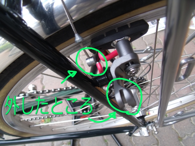 図のようにブレーキの部分をずらしてください。
