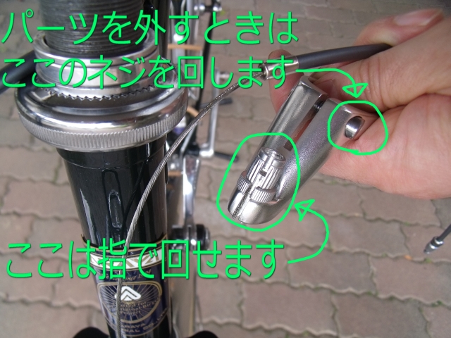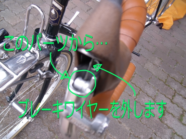 次に、左右のブレーキワイヤーを外しますが、部位の専門用語がわかりません。