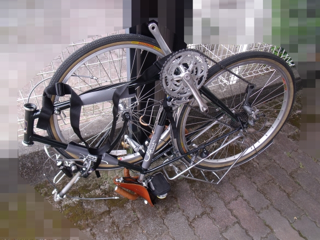 他にも輪行方法がありますが、自分の場合はこれがベストですね。リアキャリアつけちゃってるんで…。