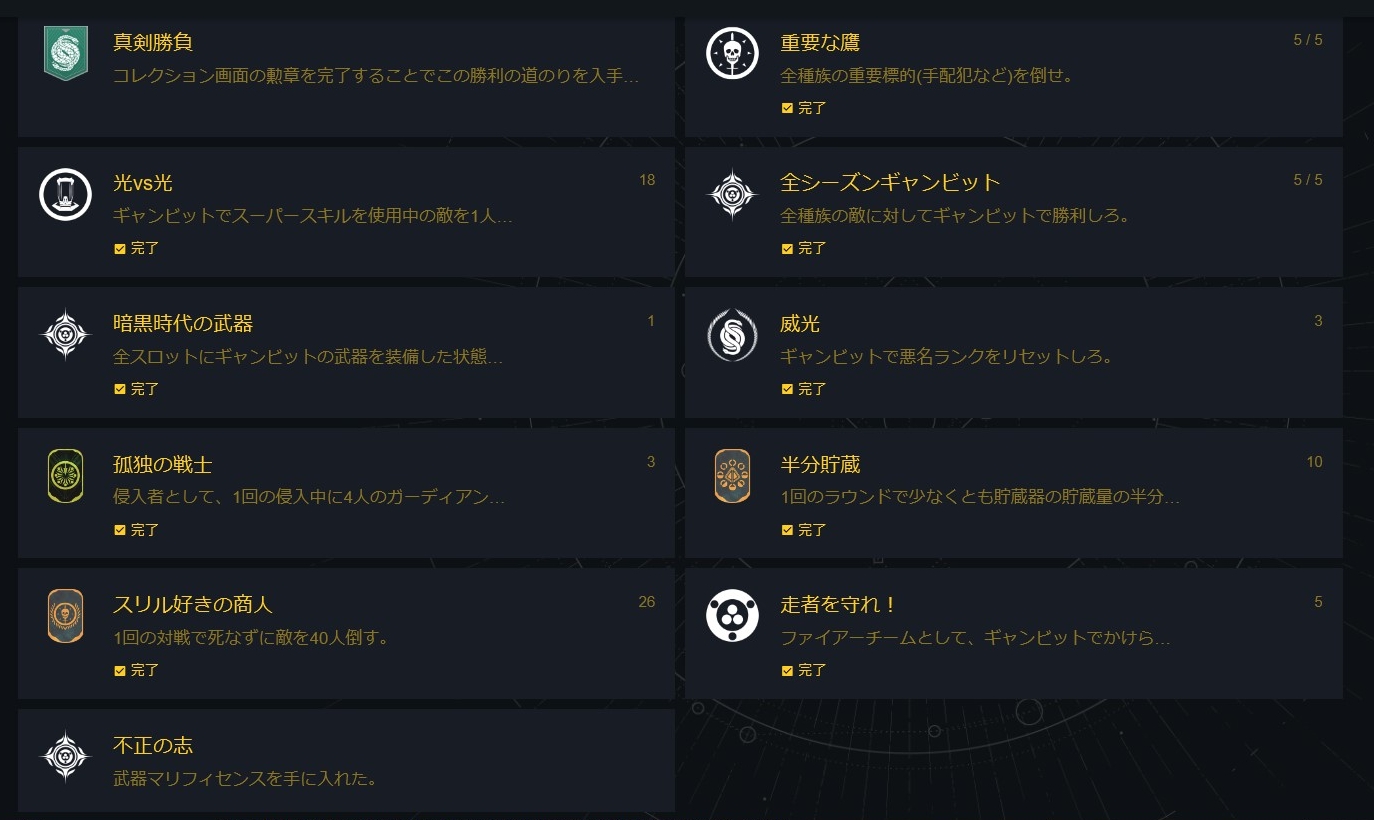 ギャンビット(4人VS4人のPvP要素のあるPvE)の称号だ。