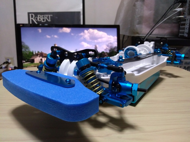前後とも、サスシャフトが渋すぎて、結局電ドリでシャフトを通す穴を削る羽目になった。