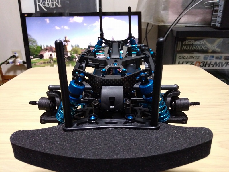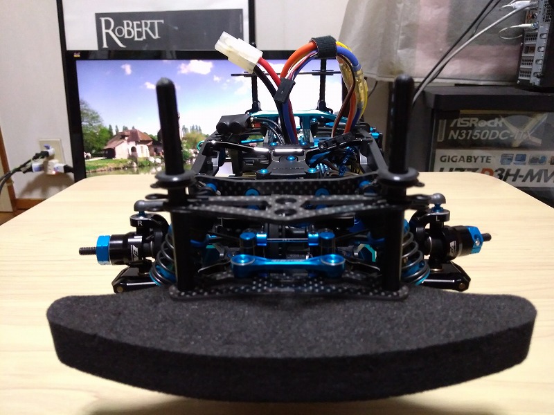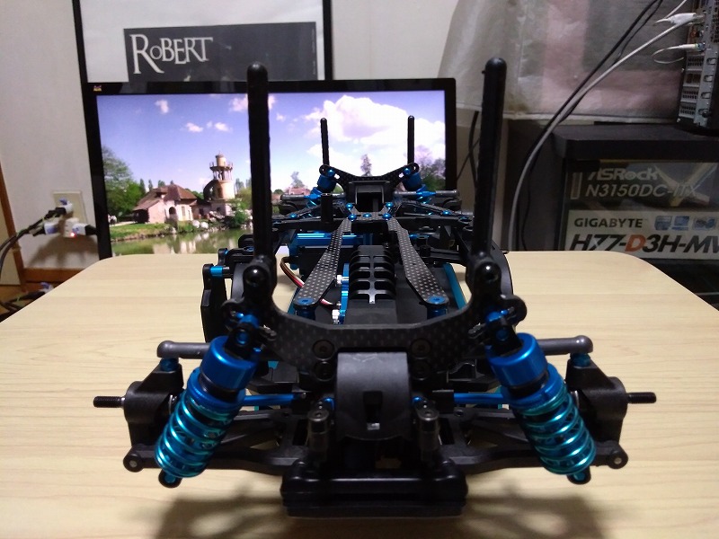 前後とも、サスシャフトが渋すぎて、結局電ドリでシャフトを通す穴を削る羽目になった。