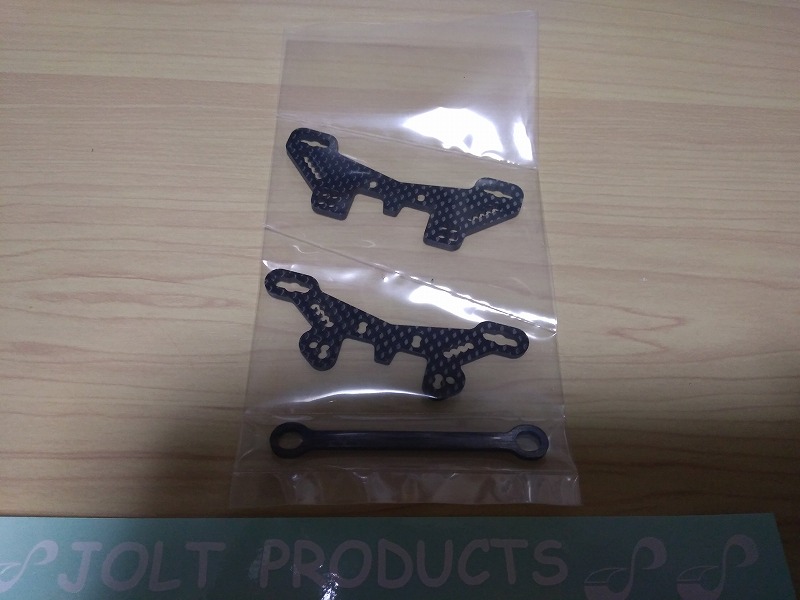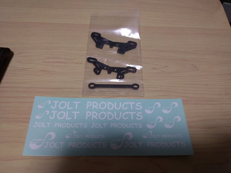 JOLT製のカーボンダンパーステー(3ミリ厚/前後)である。