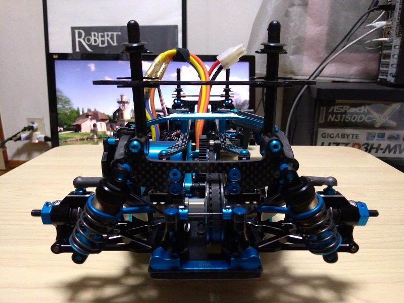 前後とも、サスシャフトが渋すぎて、結局電ドリでシャフトを通す穴を削る羽目になった。