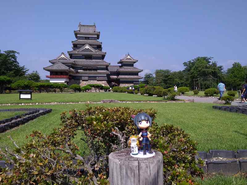 松本城をバックに、ご当地キャラクター「くのいち縄手」ちゃんw