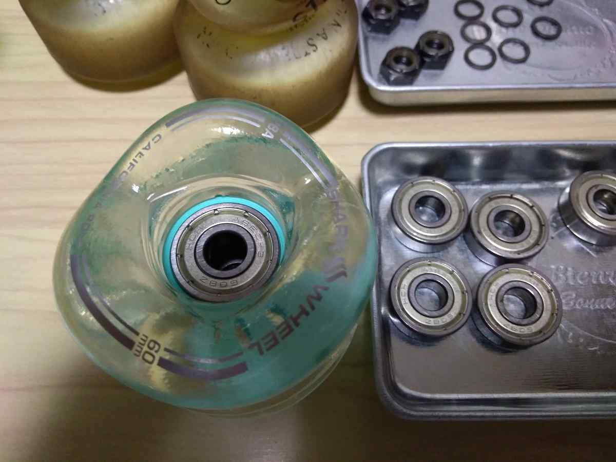 ウィールにはめ込まれてるベアリングは、外すのに少し力がいる。